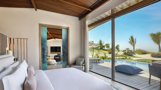 يعدّ منتجع سانت ريجيس البحر الأحمر وجهة مثالية للباحثين عن الرفاهية، حيث يضم 90 فيلا عائمة فوق الماء وعلى الشاطئ بتصاميم من غرفة نوم واحدة إلى 4 غرف نوم، والتي تتميز جميعها بحوض سباحة خاص وشرفة للاستمتاع بأشعة الشمس ولحظات الغروب.