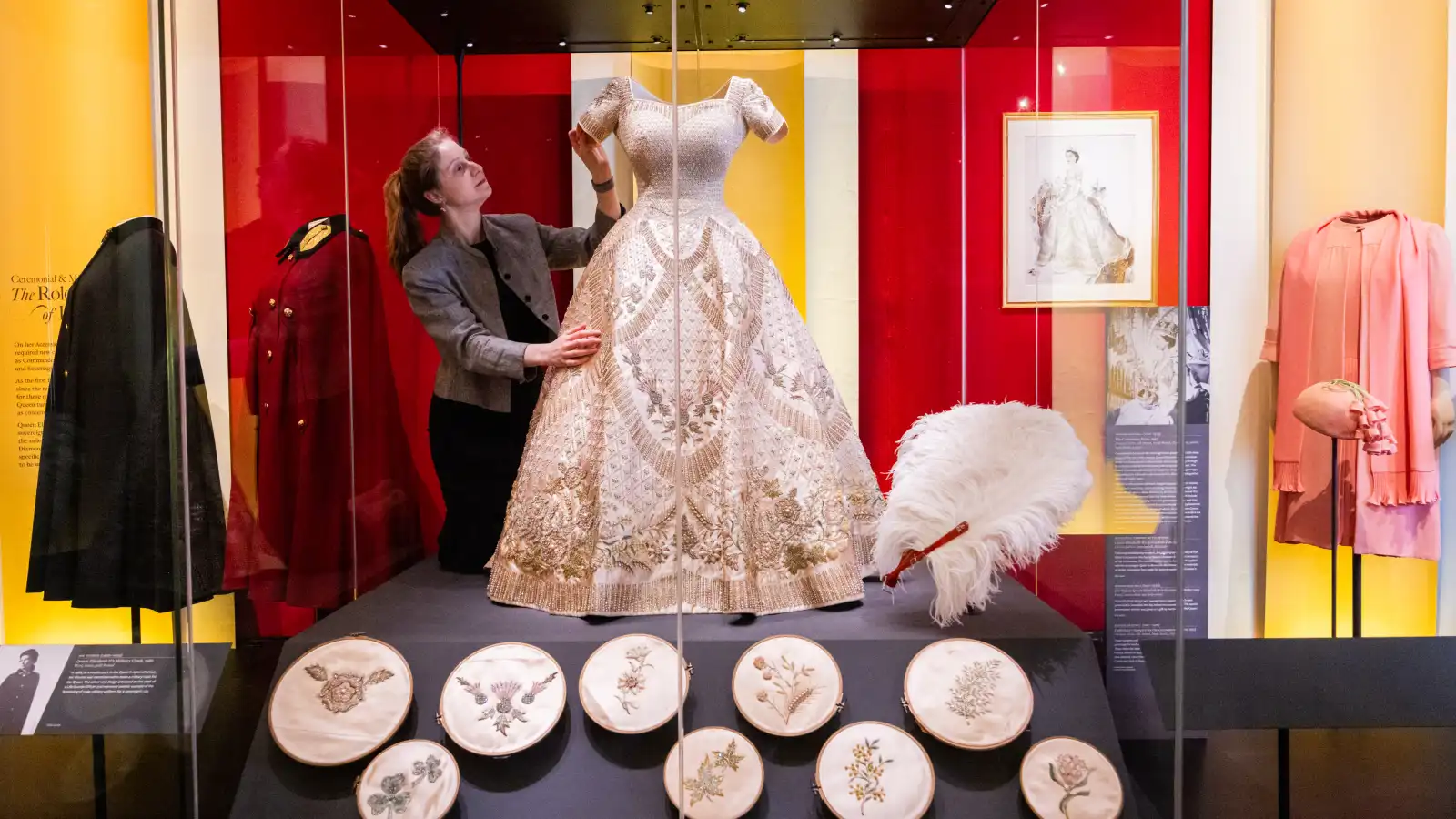 ويضمّ المعرض، الذي يمتد خلال الفترة من 10 إلى 18 أبريل الجاري، نحو 300 قطعة، تشمل فساتين طفولتها غير المعروضة سابقًا، ومجوهراتها في حفل زفافها، والتيجان، إضافة إلى الفستان الذي ارتدته في مراسم أولمبياد لندن 2012. ويُعرض نحو نصف هذه القطع للمرة الأولى، ما يجعله الأكثر شمولًا لخزانة الملكة على الإطلاق.