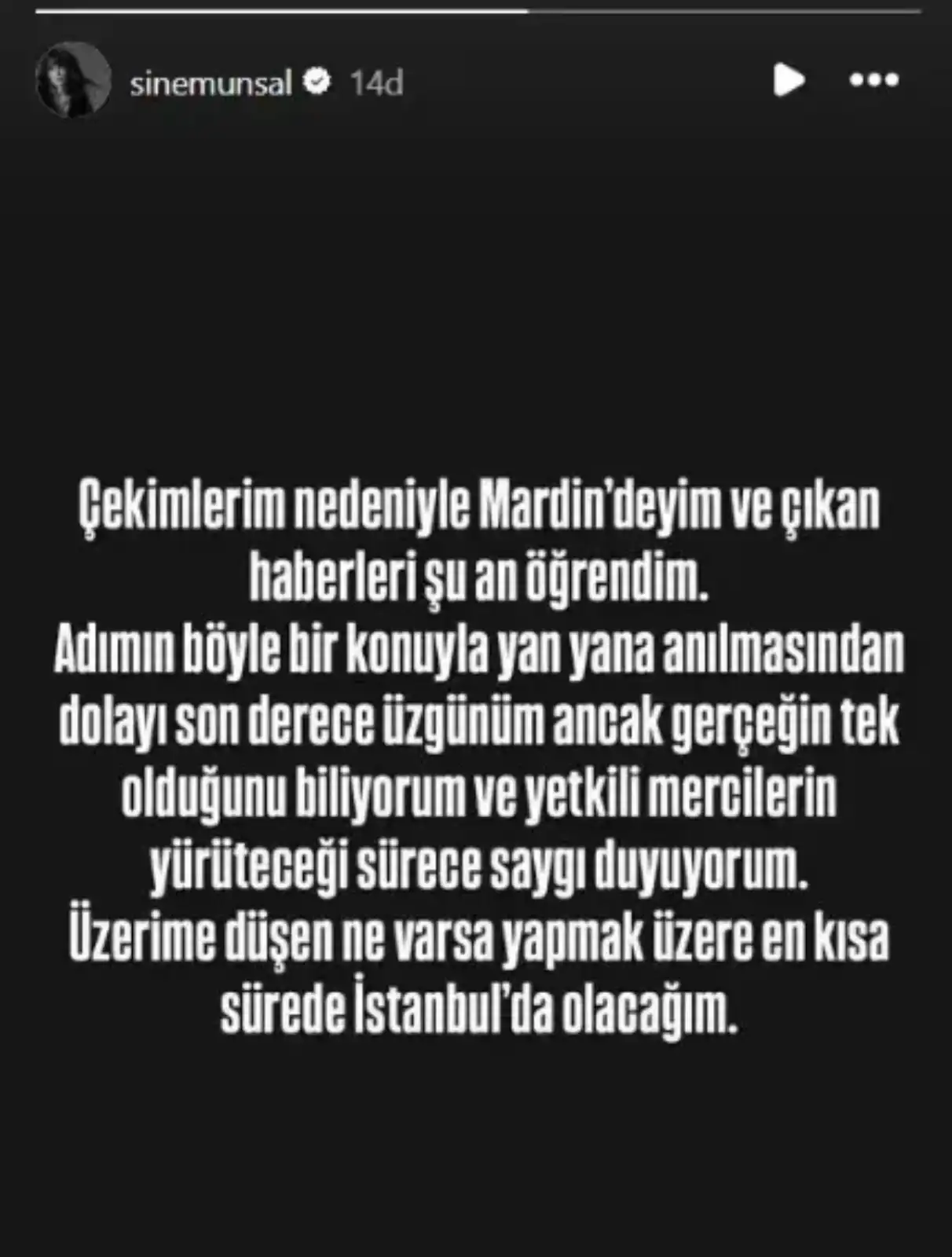 رد سينام أونسال على مذكرة توقيفها في قضية "مخدرات المشاهير" شاركت نجمة "المدينة البعيدة" عبر خاصية "الستوري" في "إنستغرام" بياناً تؤكد فيه استياءها من ربط اسمها بالقضية، مُشيراً إلى أنها في الوقت الحالي متواجدة في مدينة ماردين لتصوير أعمالها الفنية.