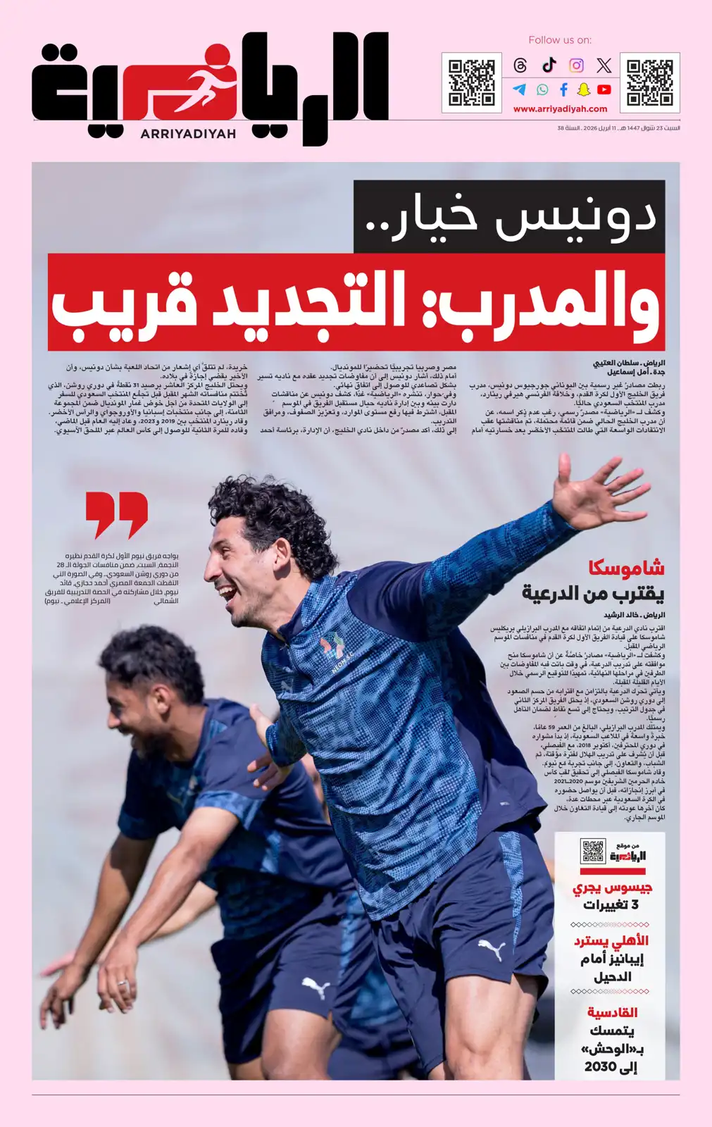 كما اهتمت بمباراة برشلونة وإسبانيول، وكتبت: "عودة دي يونغ من أجل الاقتراب من اللقب".