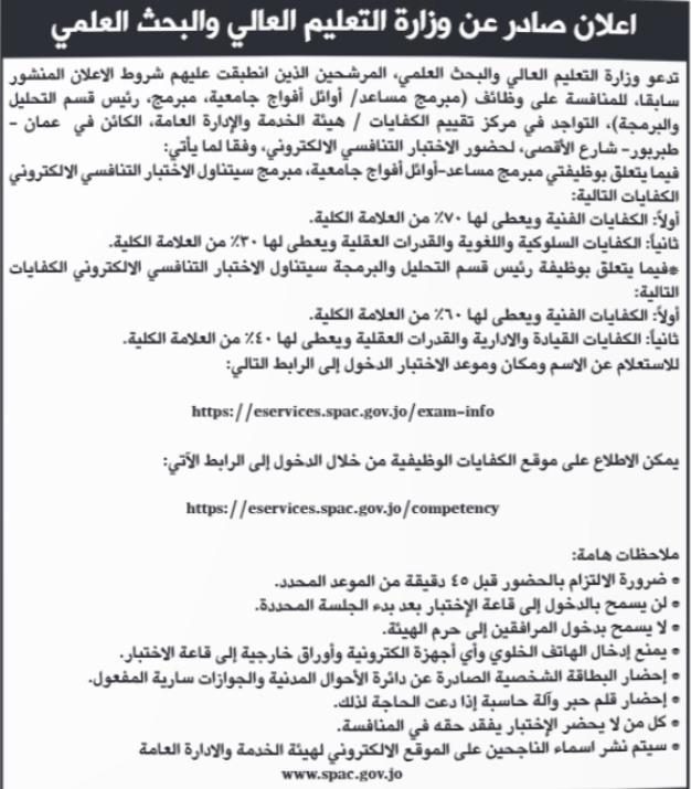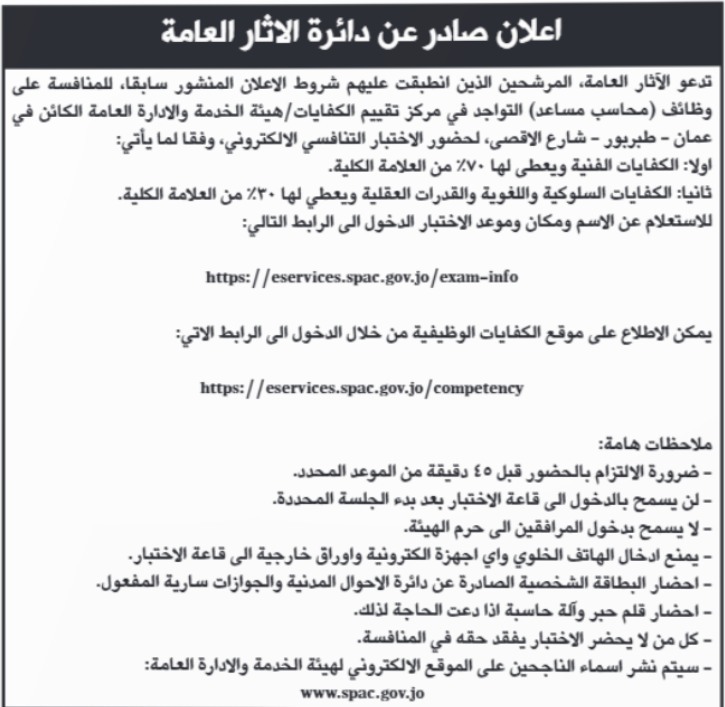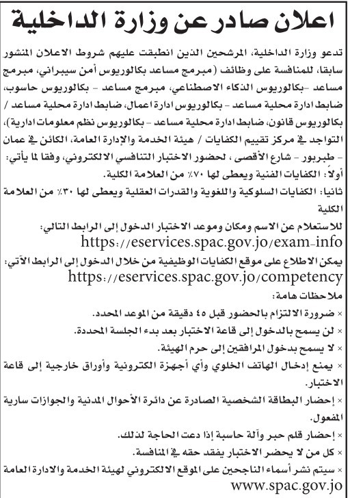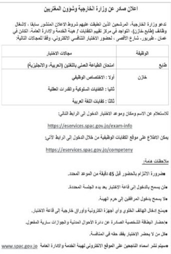 الوكيل الإخباري- دعت دوائر حكومية اليوم الاثنين المرشحين الذين انطبقت عليهم شروط الاعلان المنشور سابقا للامتحان التنافسي.