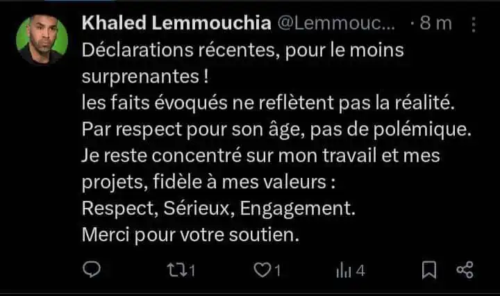 وفنّد لموشية تصريحات مدربه السابق، معتبراً أن الوقائع التي رواها سعدان لا تمت إلى الحقيقة بصلة، مضيفا أن ما ذكره بخصوص استبعاده من المنتخب عام 2010 غير صحيح.