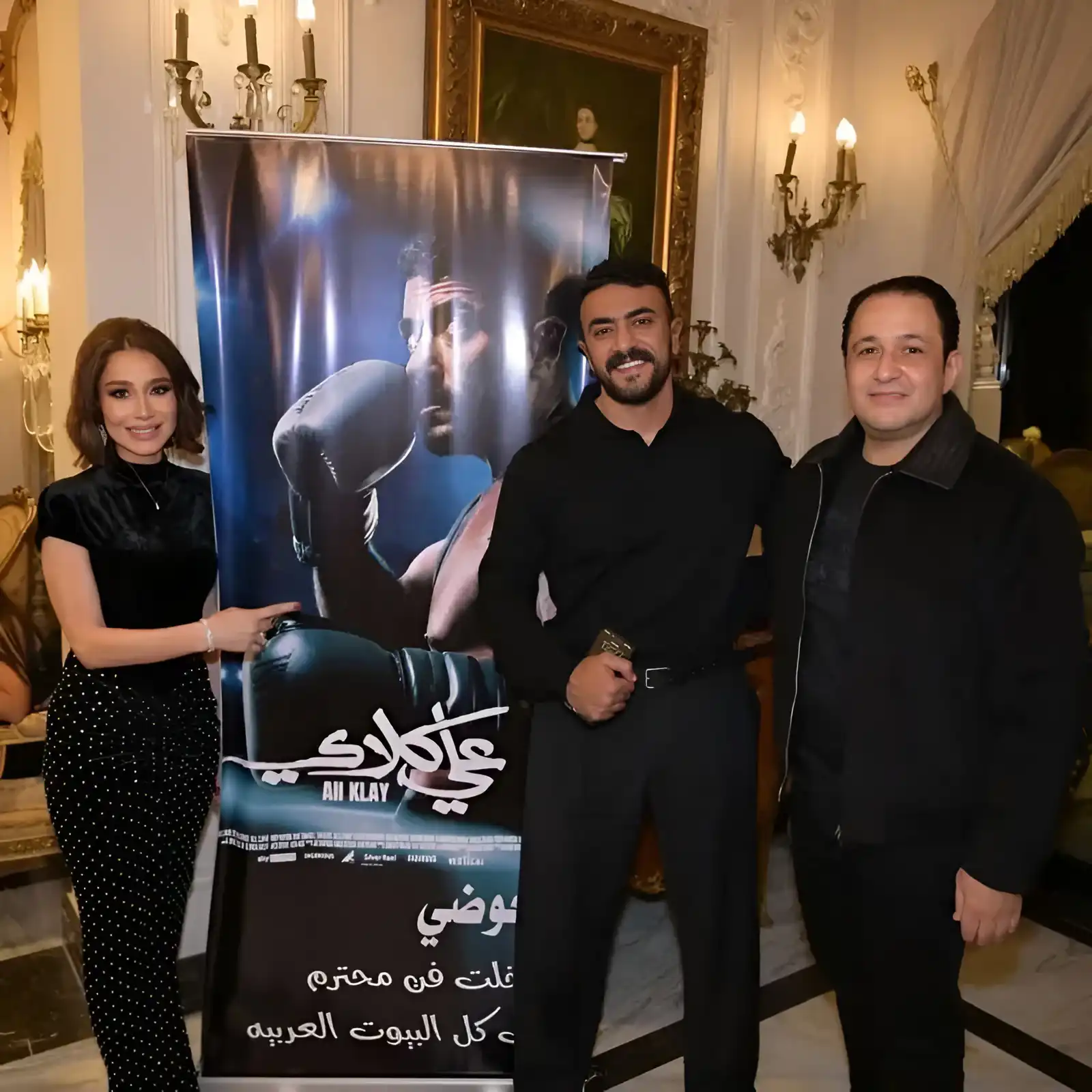 أحمد العوضي في صدارة المشهد لفت أحمد العوضي الأنظار خلال الحفل، بعد أن خصصت له بسمة وهبة مساحة بارزة، فقد وضعت بوسترًا كبيرًا لمسلسله "علي كلاي"، وكتبت عليه عبارة: دخلت فن محترم في كل البيوت العربية.
