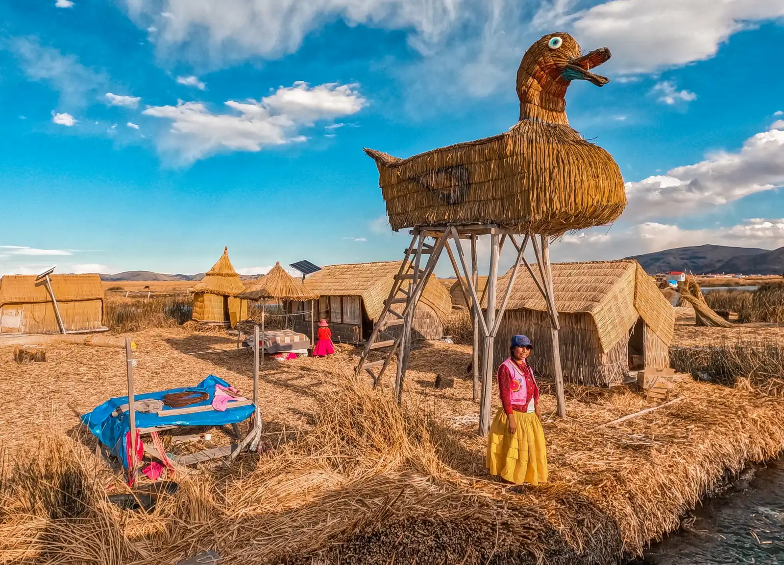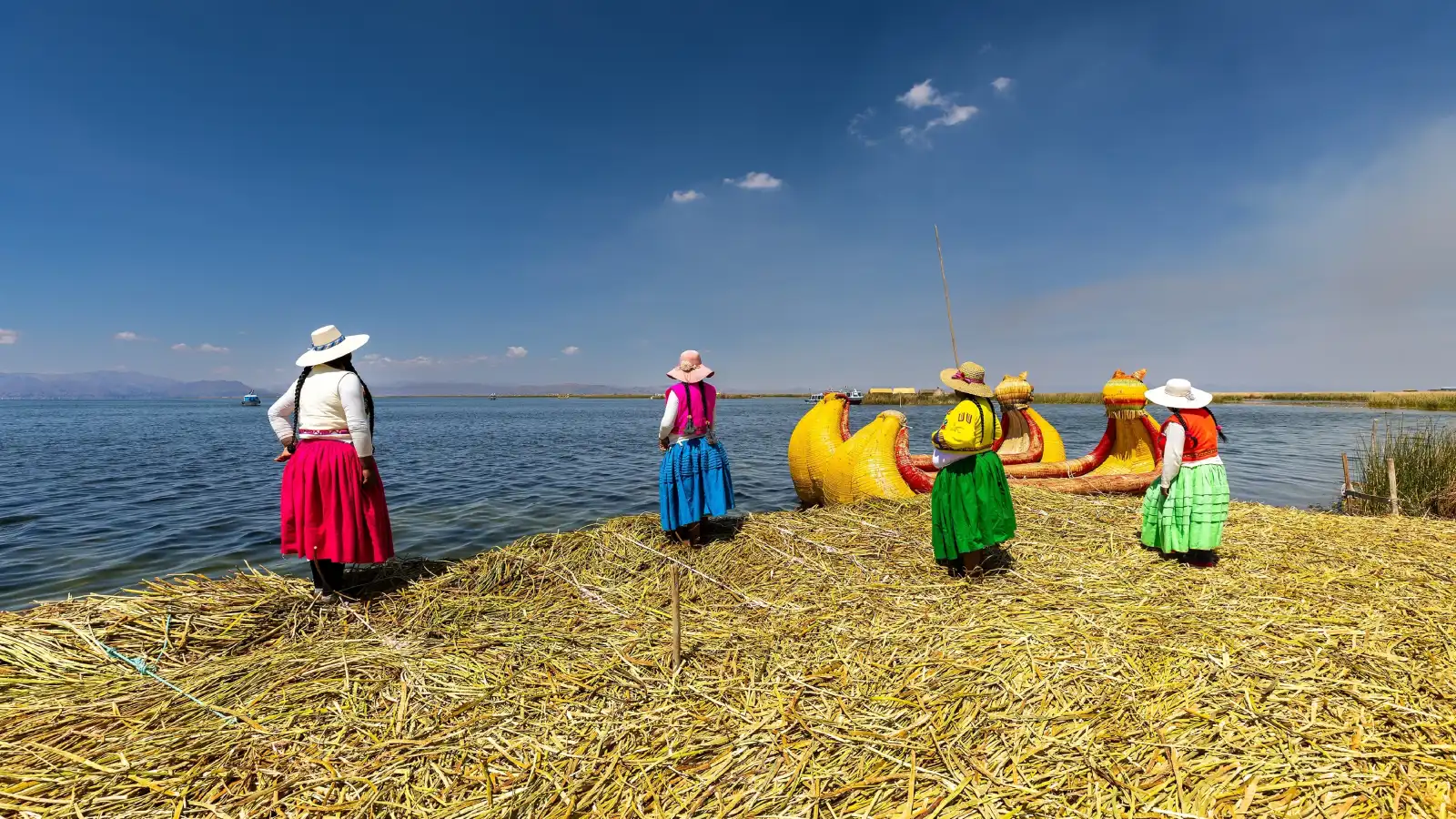 مجتمع متجذر في التقاليد في جزر أوروس، لا تزال الحياة تسير بإيقاعها التقليدي، حيث يعيش السكان في نحو 50 جزيرة عائمة صُنعت بالكامل من نباتات القصب. هذا المشهد، بألوانه الزاهية وتفاصيله اليدوية، يبدو وكأنه لوحة حيّة خارج الزمن. حتى المنازل والقوارب تُبنى من قصب التوتورا ؛ ما يعكس ارتباطًا عميقًا بالطبيعة.