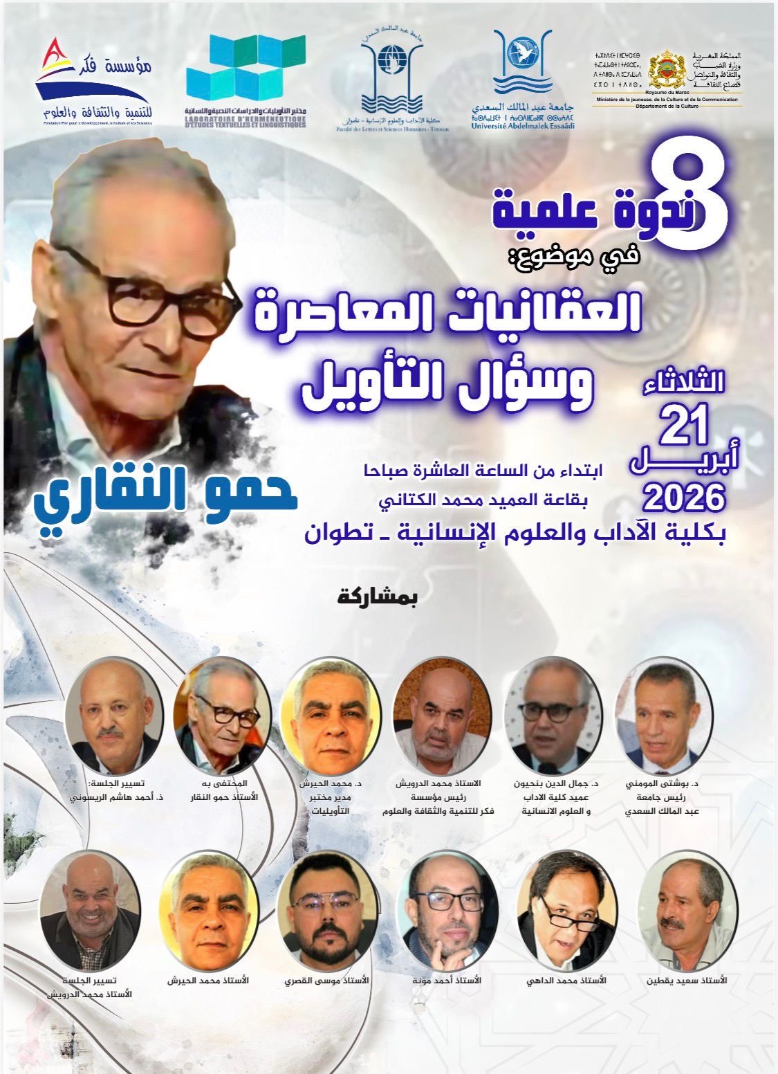 وحسب بلاغ لمؤسسة فكر للتنمية والثقافة والعلوم، فإن هذه الندوة تنعقد بشراكة مع وزارة الشباب والثقافة والتواصل قطاع الثقافة، وجامعة عبد المالك السعدي، وكلية الآداب والعلوم الإنسانية بتطوان، ومختبر التأويليات والدراسات النصية واللسانية، ضمن دينامية متواصلة تؤطر الدورة الثامنة من الندوات التكريمية التي تسلط الضوء على أعلام الفكر والإبداع بالمملكة.
