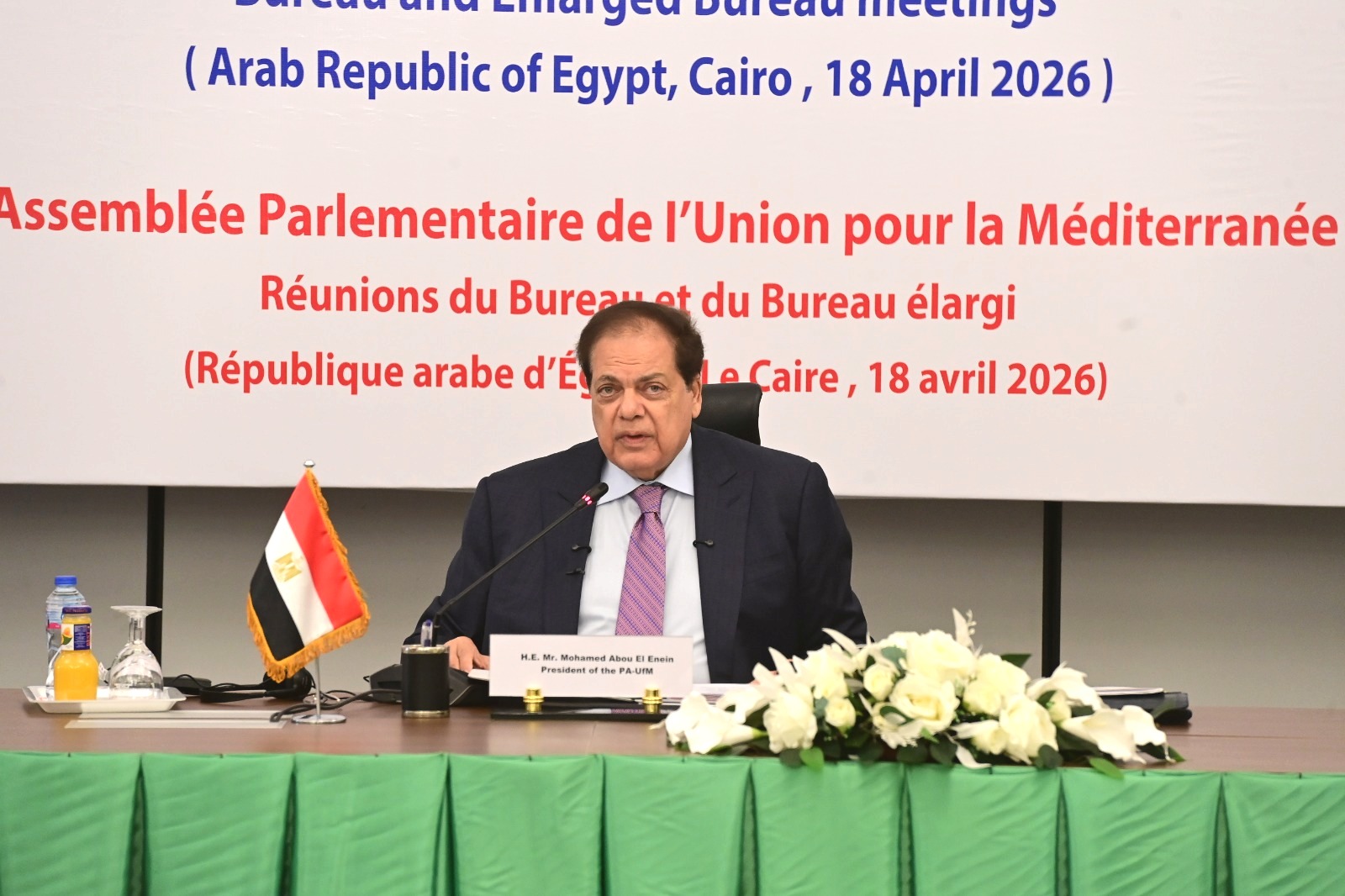 جاء ذلك رئاسته اجتماع هيئة المكتب والمكتب الموسع للجمعية البرلمانية للاتحاد من أجل المتوسط، بمقر مجلس النواب في العاصمة الجديدة.