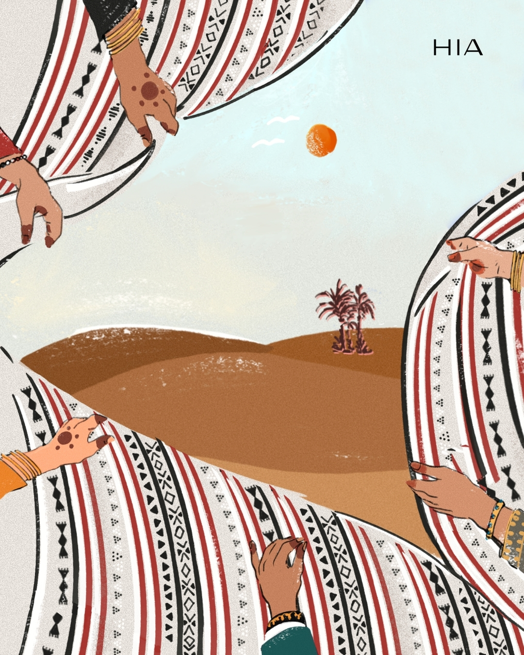 عندما بدأت العمل على هذا العمل الفني، بتكليف من مجلة "هي" وجدت نفسي أعود لفكرة اليد . اليد في ثقافتنا ليست مجرد أداة بل رمز للكرم، للعمل، وللحضور الحقيقي. يد تُقدّم القهوة، يد تُحيّي، يد تبني، ويد تحمي. وربما لهذا أشعر أن الفن، في جوهره، هو فعل يد، من خلال لوحة، أو قطعة خزف، أو تصميم، أو حتى كلمة مكتوبة، يمكن للفنان أن يعبّر عن مشاعر جماعية، عن أفراح وآلام، عن قصص قد لا تُروى بغير هذا الشكل. هذه القدرة على التعبير تجعل الفن أداة قوية لبناء التعاطف، وهو أول خطوة نحو مجتمع أكثر ترابطًا.