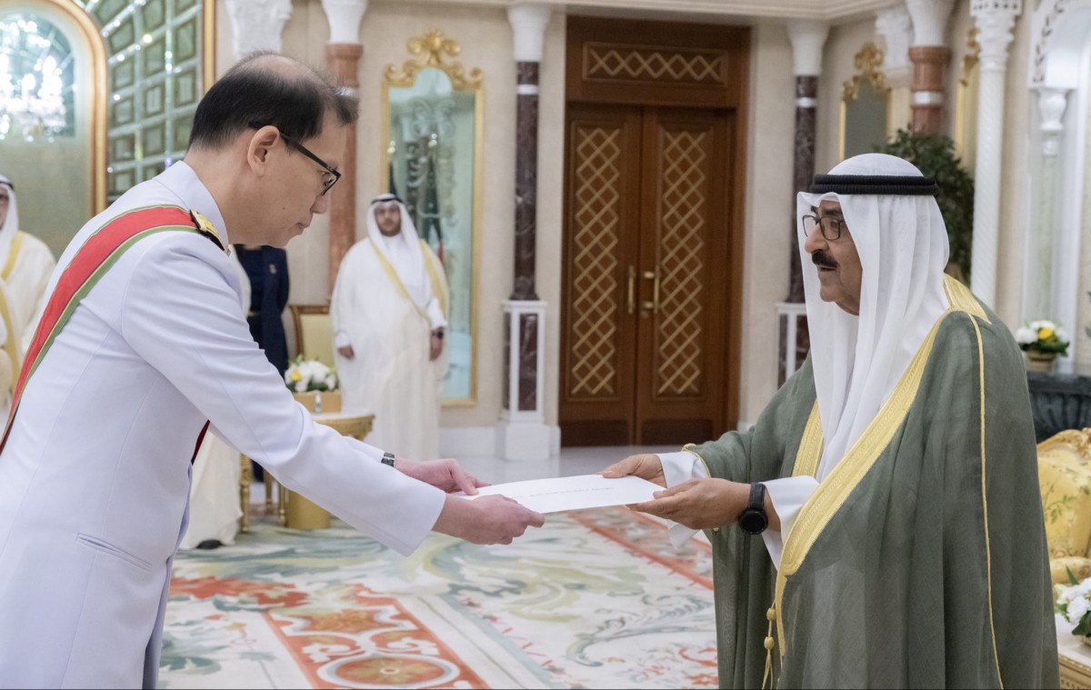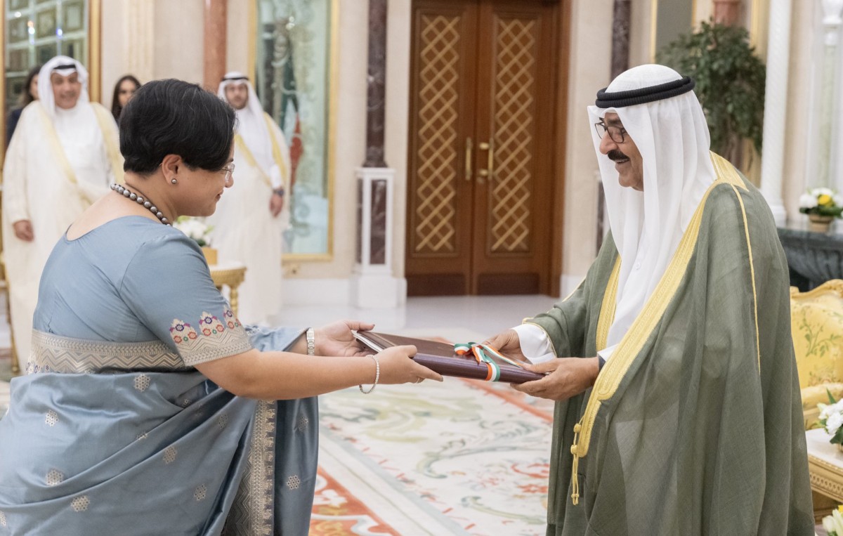 احتفل اليوم بتسلم صاحب السمو أمير البلاد الشيخ مشعل الأحمد، أوراق اعتماد كل من السفير بوب دورجي سفيرا لمملكة بوتان والسفير سوليني سعيد سفيرا لبروناي دار السلام والسفير بارميتا تريباثي سفيرا لجمهورية الهند والسفير يانغ شين سفيرا لجمهورية الصين الشعبية والسفير سونغتشاي تشايباتييوت سفيرا لمملكة تايلند وذلك كسفراء لبلادهم لدى دولة الكويت.