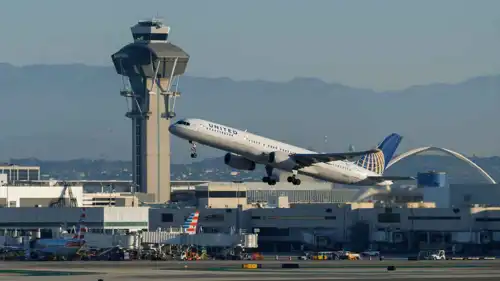 طائرة "بوينغ 757" متوقفة لإجراء الصيانة قرب حظيرة "يونايتد إيرلاينز" في مطار لوس أنجلوس. وفقدت إحدى طائرات الشركة إطاراً بعد إقلاعها من مطار لوس أنجلوس. وتمكنت من الهبوط بسلام.