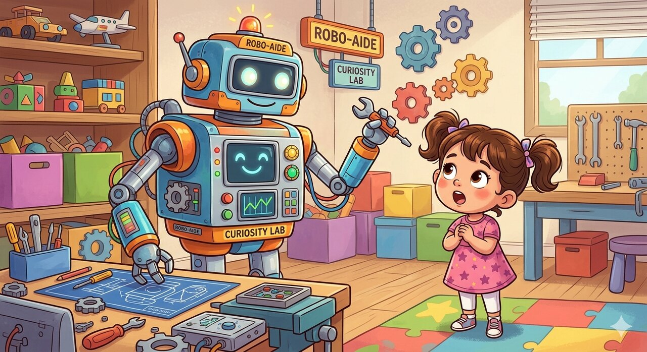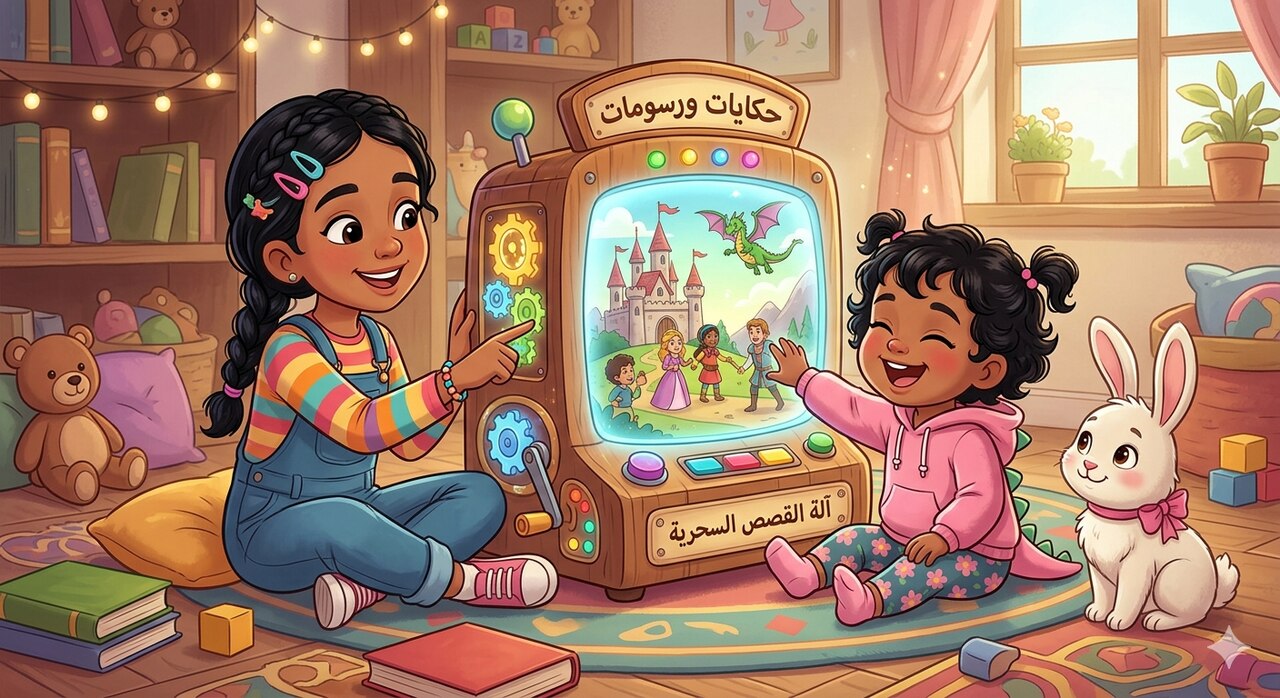 بتوجيه من آدا، برمجت ربيعة آلتها، وأطعمتها قصصاً، فبدأت تنسج حكايات سحرية على الشاشة بمفردها تماماً. أما روميسا، فرغم صغر حجمها، فقد ساهمت بحسها البريء والدقيق للألوان، فساعدت ربيعة في تلوين الآلة بألوان زاهية تعكس عالمهم البخاري الصاخب.