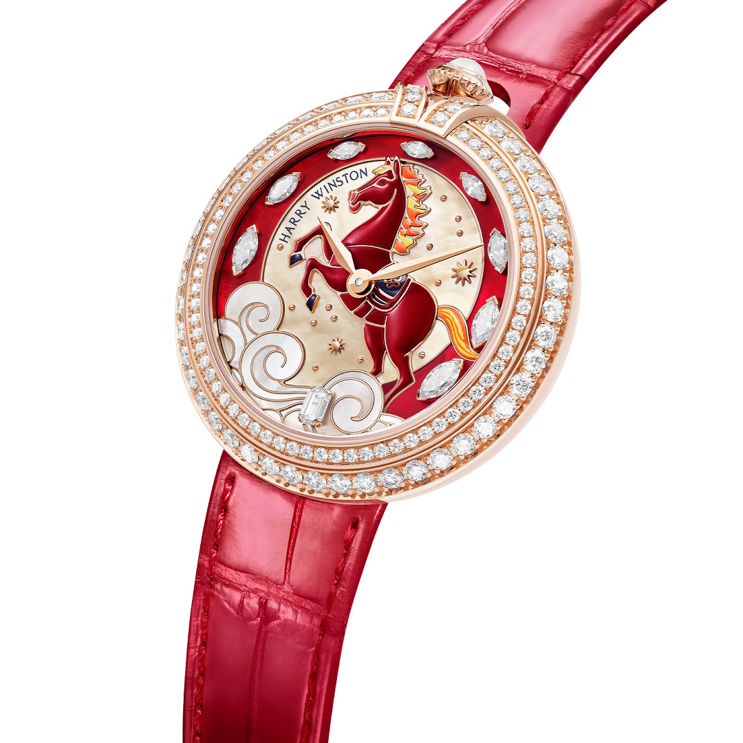 إذا كنتِ من عاشقات الألوان الجريئة، فإن ساعة Chinese New Year Automatic من هاري وينستون Harry Winston تقدم لكِ لوناً أحمر نارياً مستوحى من الطاقة والحيوية التي تميز فصل الربيع.
