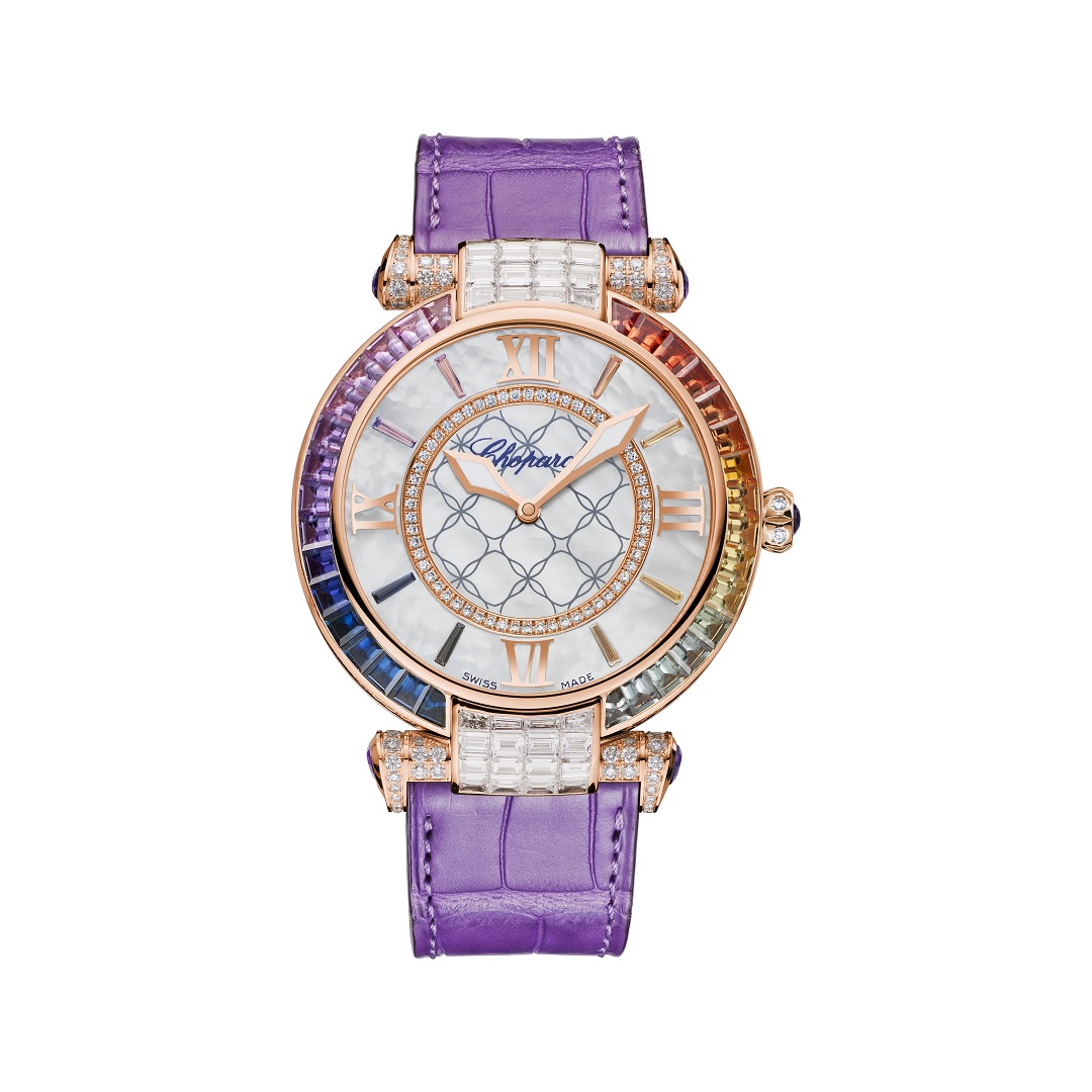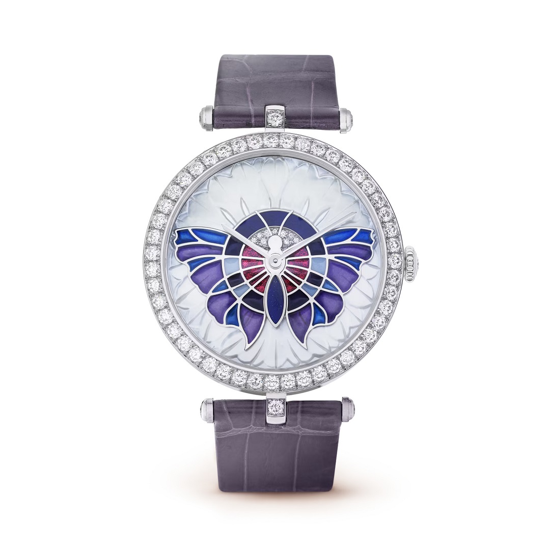 استوحت الدار تصميم هذه الساعة من رمز البيضة الشهير المرتبط بتاريخها العريق؛ لتقدم قطعة تجمع بين التراث والحداثة؛ إذ يضفي الذهب الوردي عيار 18 قيراطاً لمسة دافئة تشبه أشعة الشمس في فصل الربيع، بينما تعكس الأحجار الكريمة ألوان الزهور المتفتحة، من الوردي إلى الأزرق والأخضر.