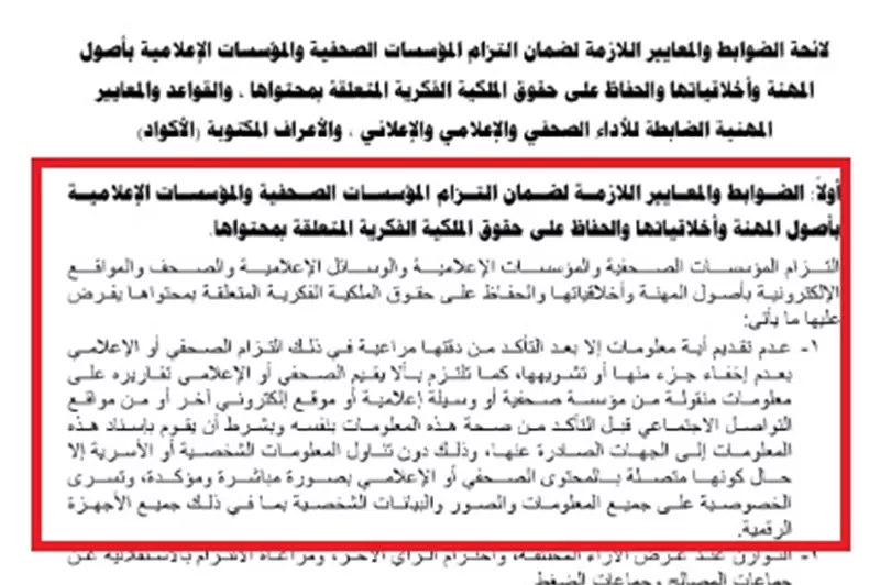 الأكواد ومدونة السلوك أصدر المجلس الأعلى لتنظيم الإعلام فيو يوليو 2018 المعايير والاكواد الاعلامية ولائحة الجزاءات تضمنت عددا من.....