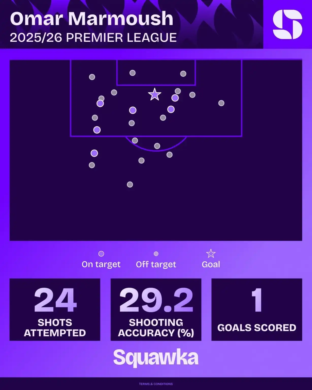 وتبلغ نسبة تحويل تسديداته إلى أهداف 4.17% فقط، مع دقة تسديد إجمالية تبلغ 29.17%،.....