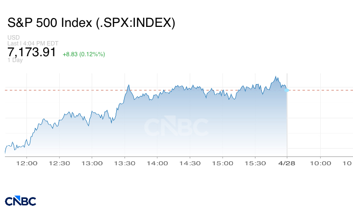 ارتفع مؤشر ستاندرد آند بورز 500 بنسبة 0.1% بعد بلوغه مستوى قياسياً جديداً خلال الجلسة.