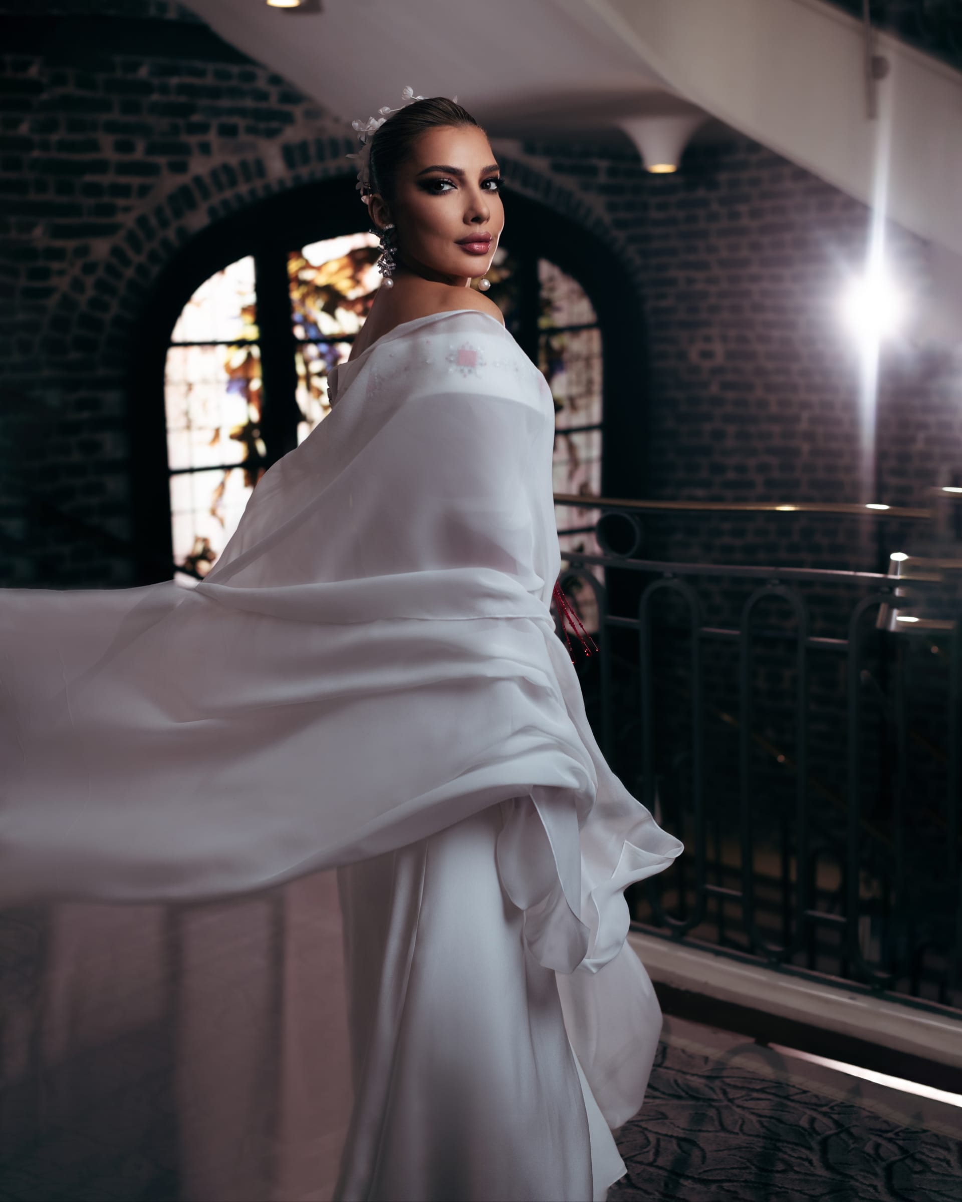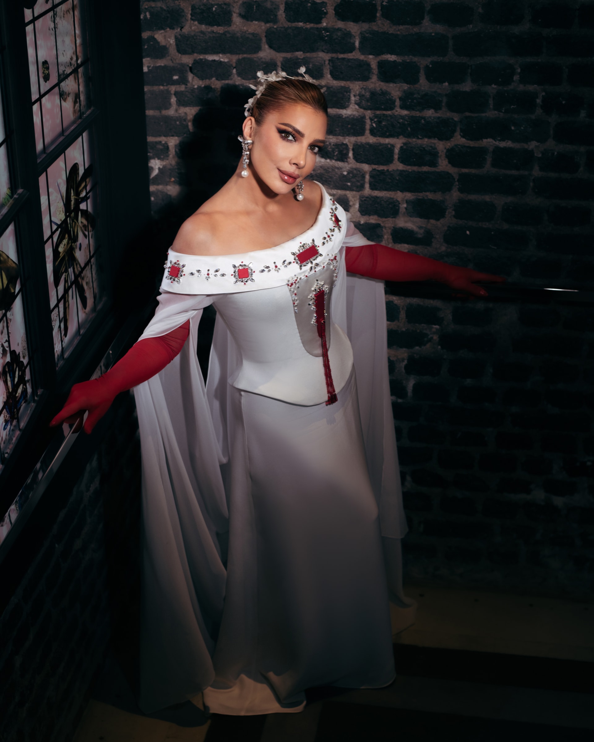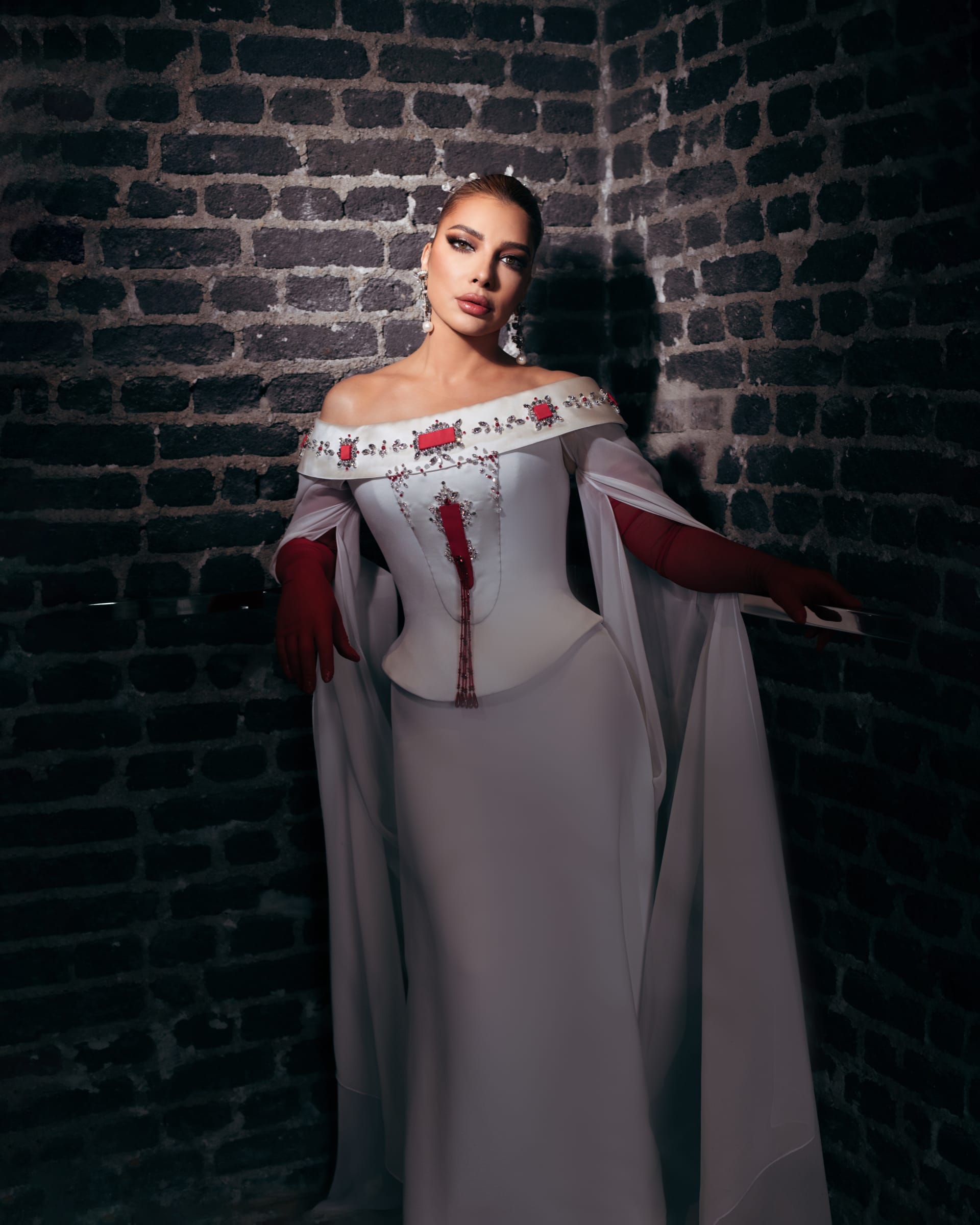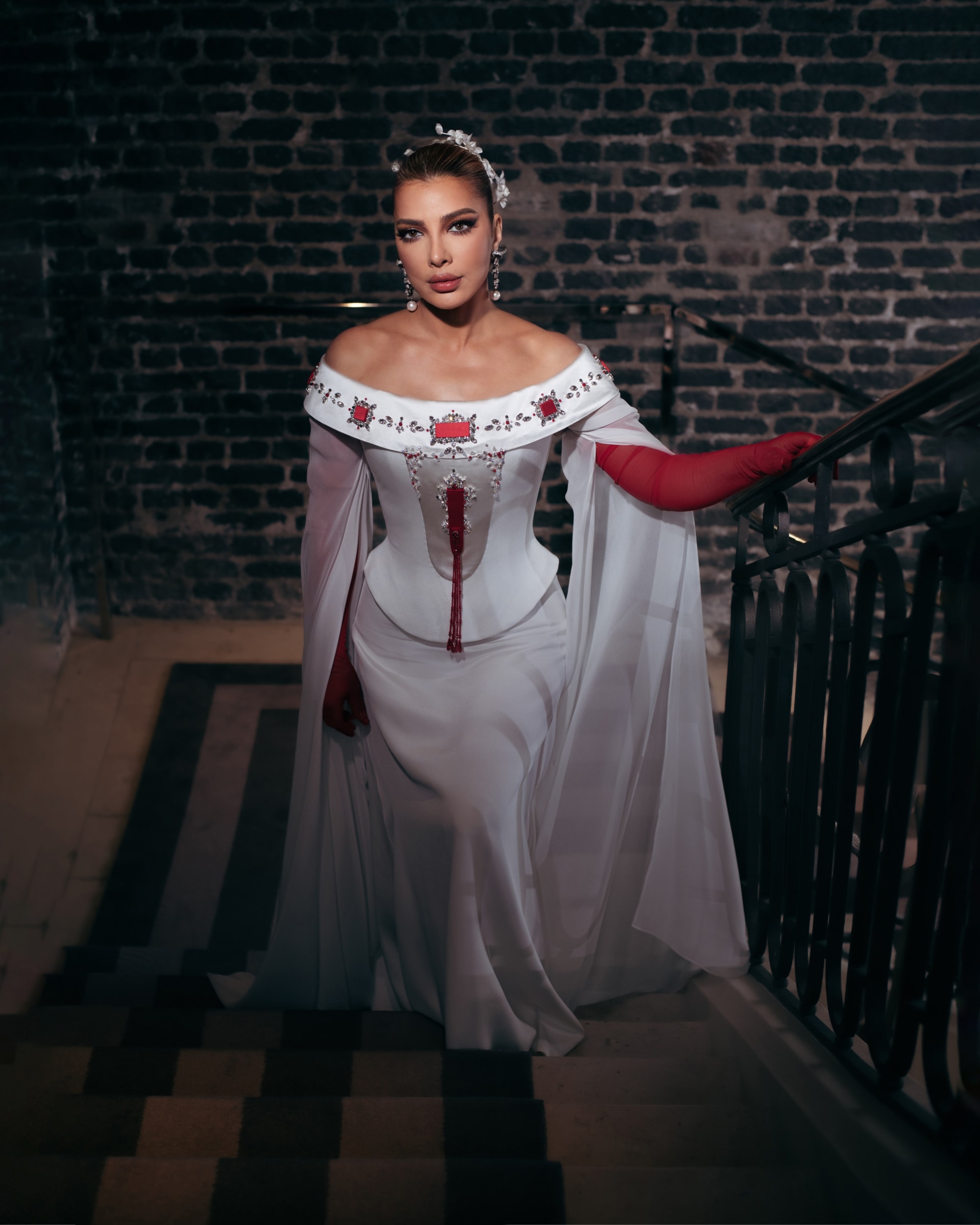 وأوضح الحاج علي: "يرمز اللون الأبيض بالنسبة لي إلى النقاء والسلام، وهي معانٍ أشعر أنها تجمعني مع أصالة نصري، بينما يعبّر الأحمر عن القوة والشغف. بهذا التوازن، لم تكن الإطلالة مجرد تصميم، بل قصة مشتركة".