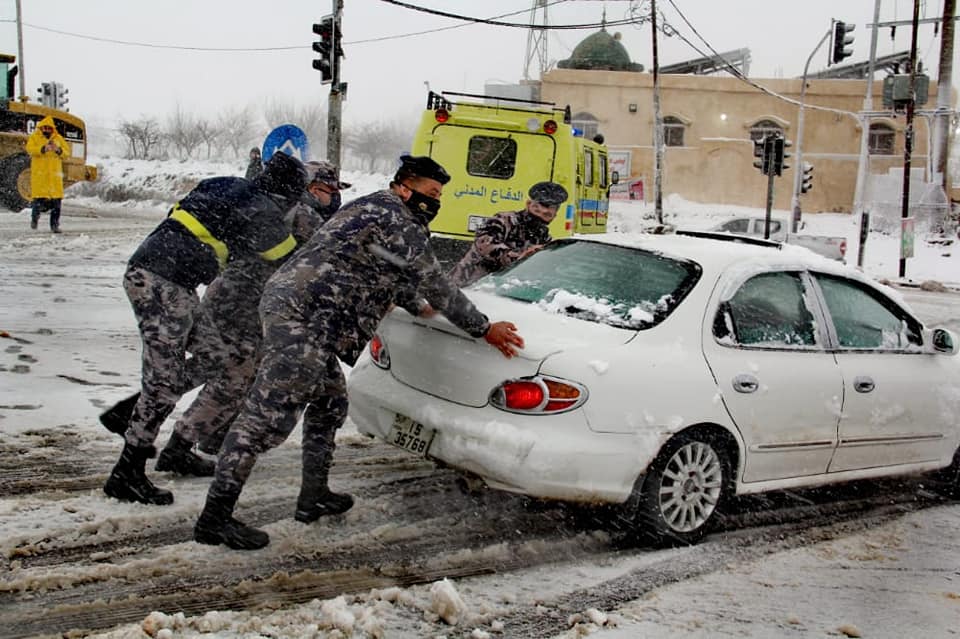 عندما تكتسو جبالنا ودروبنا بالثلج الأبيض ، يبقى الربيع مزهراً في قلوب رجال تعاهدوا على النخوة وحب الوطن. رجال الدفاع المدني في عجلون في الميدان يقدمون العون والمساعدة للمواطنين #الأردن