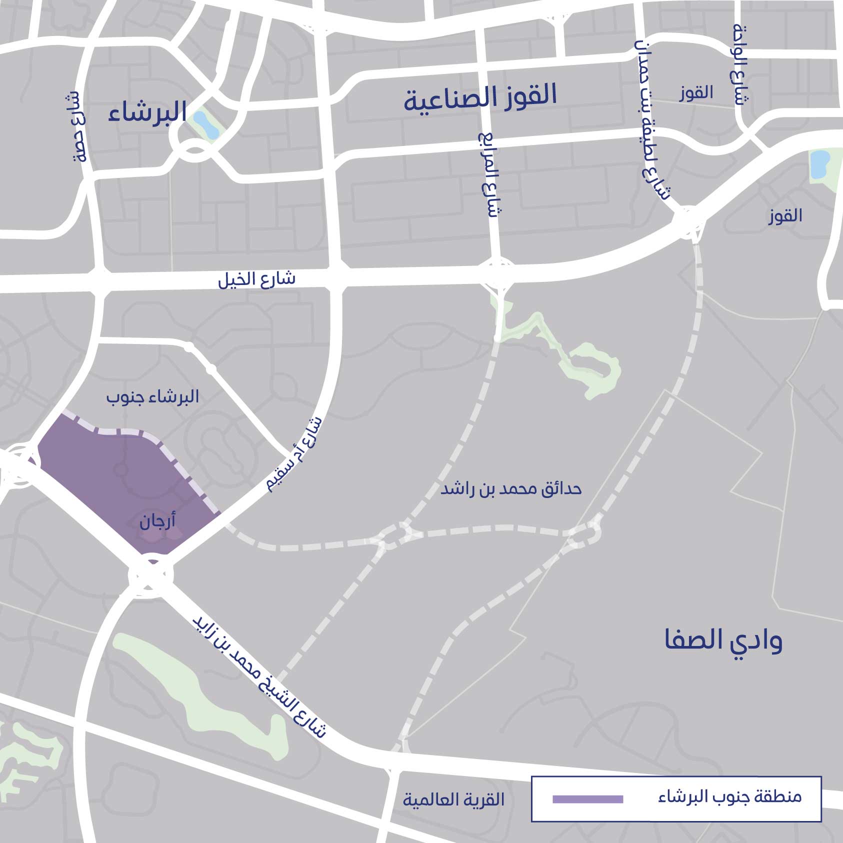 وقال معالي مطر محمد الطاير المدير العام ورئيس مجلس المديرين في الهيئة: يأتي تنفيذ مشروع الطرق الداخلية في إطار حرص هيئة الطرق والمواصلات على تطوير البنية التحتية الأساسية من أعمال الطرق والإنارة وتصريف مياه الأمطار في المناطق السكنية مشيرا إلى أن مشروع الطرق الداخلية يبلغ طوله ستة كيلومترات و400 مترا ويقع المشروع في حدائق محمد بن راشد محاطا بالبرشاء جنوب الثانية من الشمال والحبية الأولى والرابعة من الجنوب و"موتور سيتي" والمدينة الرياضية وأرجان من الشرق والبرشاء جنوب الرابعة من الغرب ويتضمن المشروع أيضا أعمال إنارة الطرق ومواقف للسيارات ومحطات للحافلات