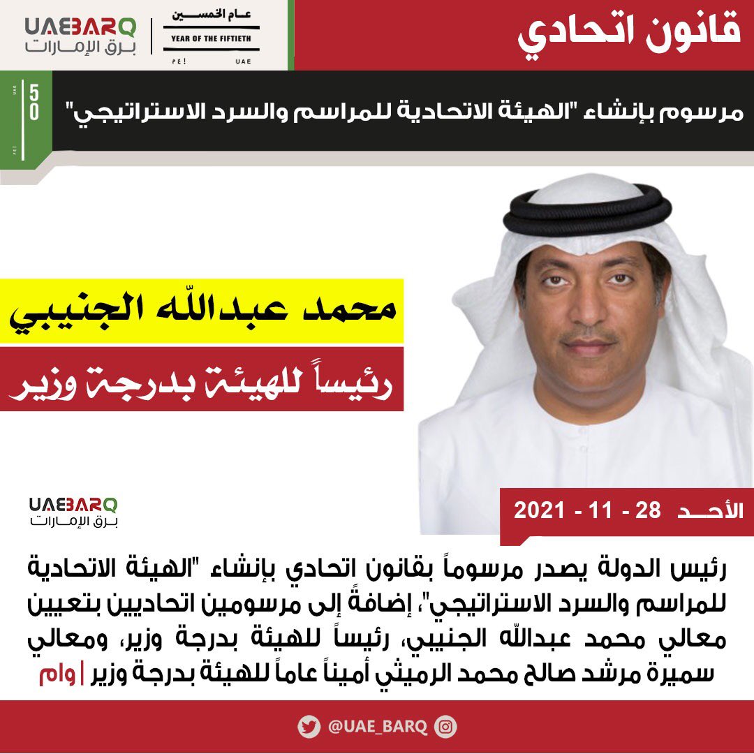 رئيس الدولة يصدر مرسوماً بقانون اتحادي بإنشاء "الهيئة الاتحادية للمراسم والسرد الاستراتيجي" | وام